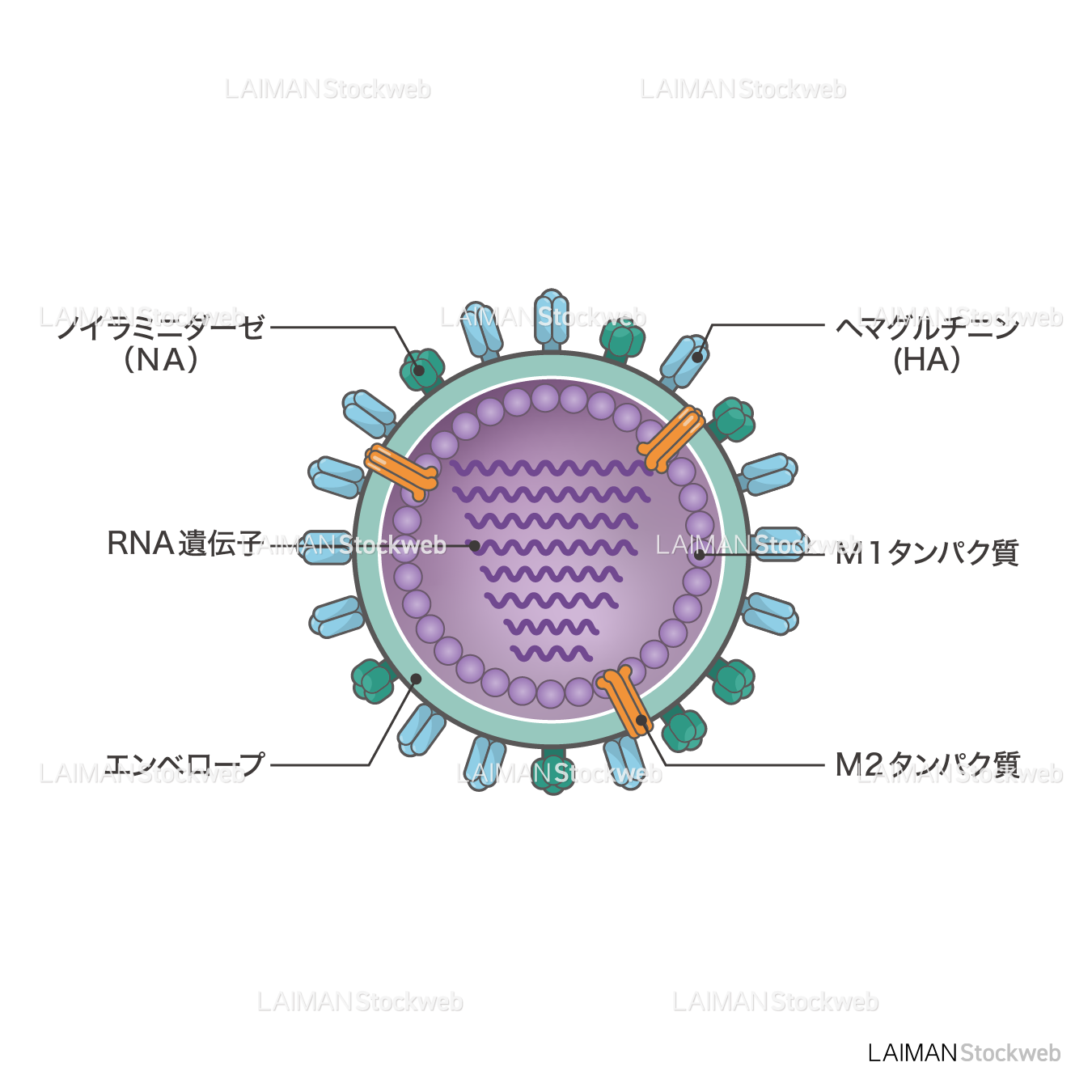 インフルエンザウィルス(構造・文字あり)