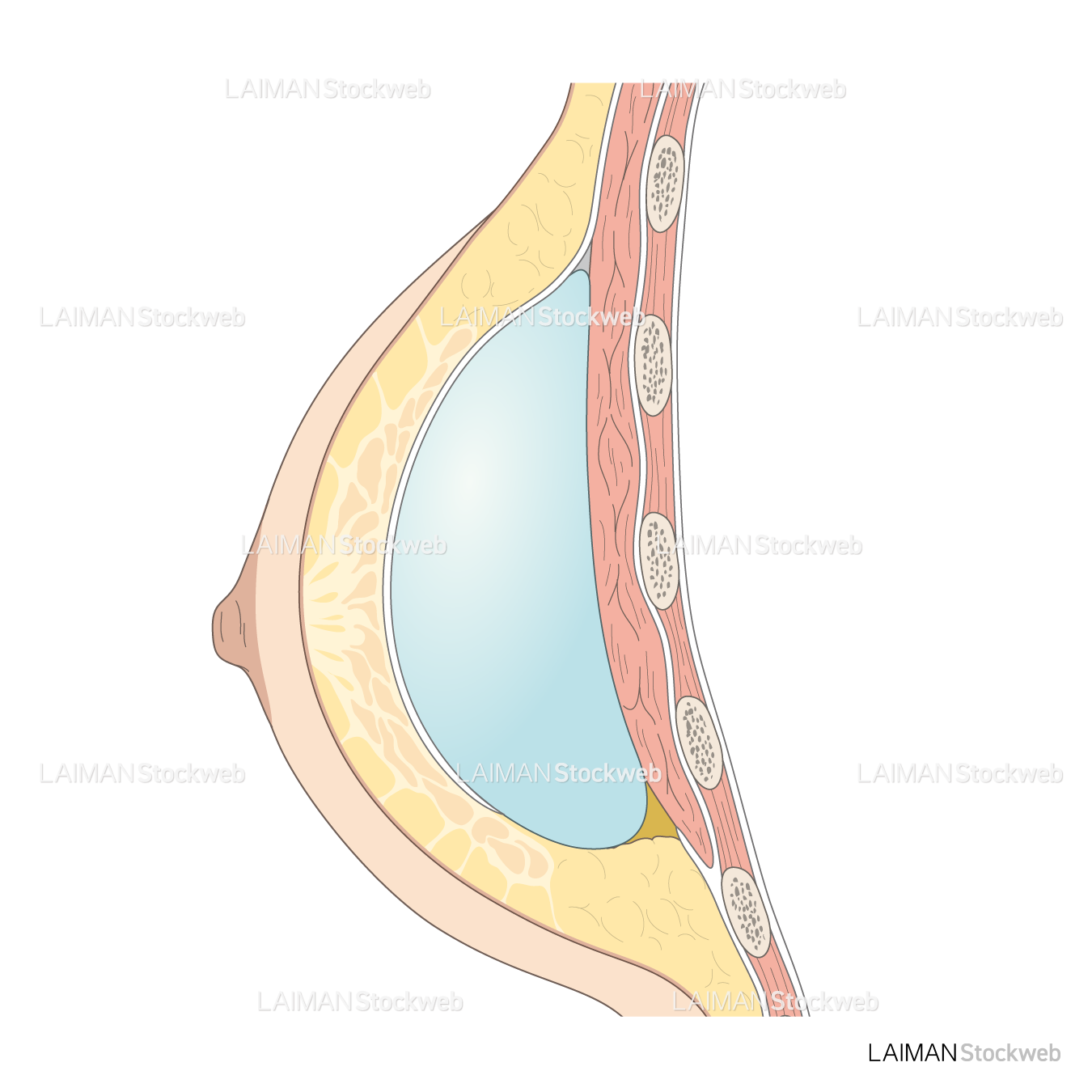 豊胸手術:大胸筋筋膜下へのバッグの挿入