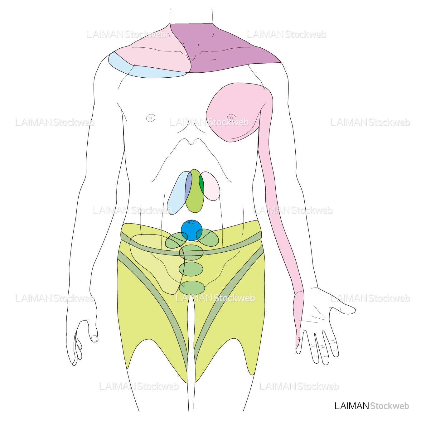 キーワード:肺・横隔膜、心臓、肝臓、胃、卵巣、大腸、膀胱、腎臓、小腸、虫垂、尿管