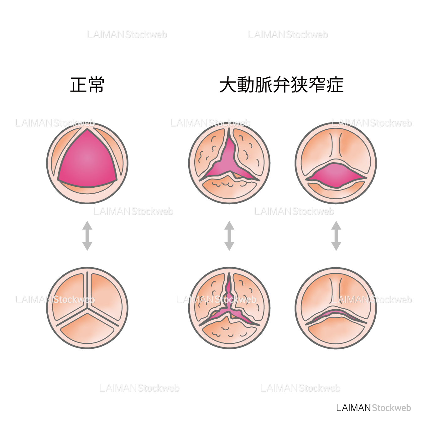 キーワード:心臓、循環器、弁膜症、大動脈弁狭窄症、大動脈弁、狭窄、開閉、正常、比較